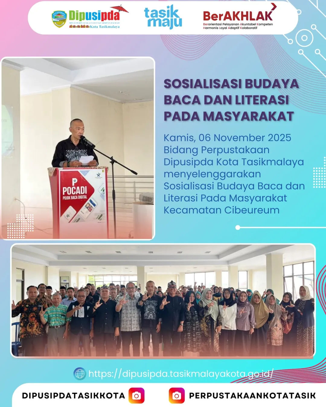 Senin, 13 Oktober 2025. Dalam rangka memeriahkan Hari Jadi ke-24 Kota Tasikmalaya, Dinas Perpustakaan dan Kearsipan Daerah (Dipusipda) Kot......